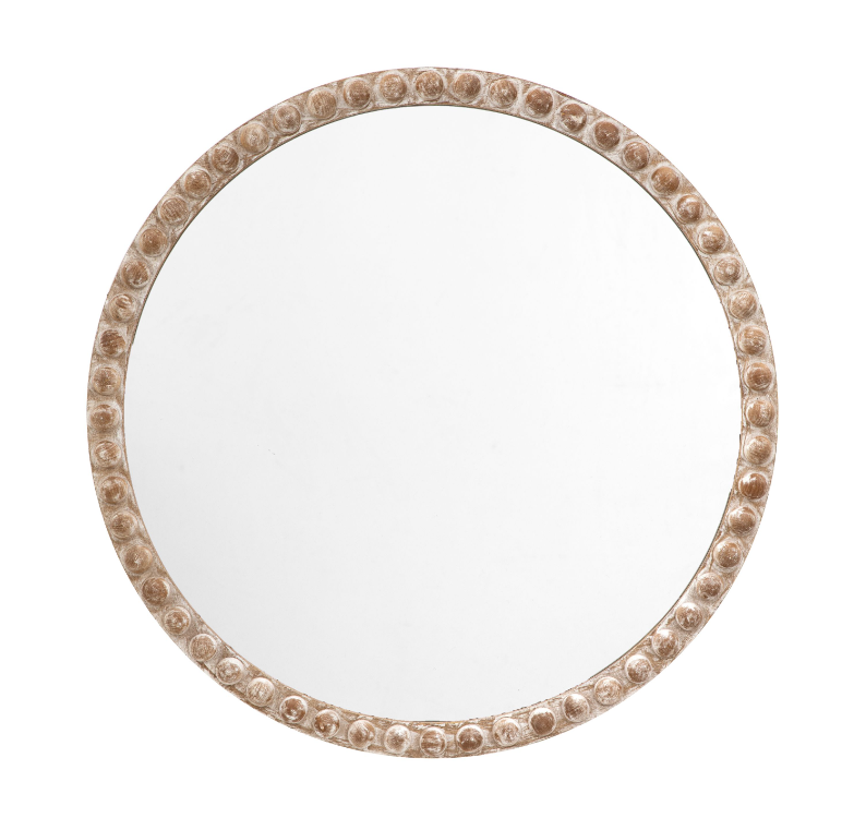 This elegant round mirror seamlessly marries vintage charm with rustic sophistication. The distressed finish imbues the home with character and warmth, while the circular framework adds a refined touch.