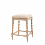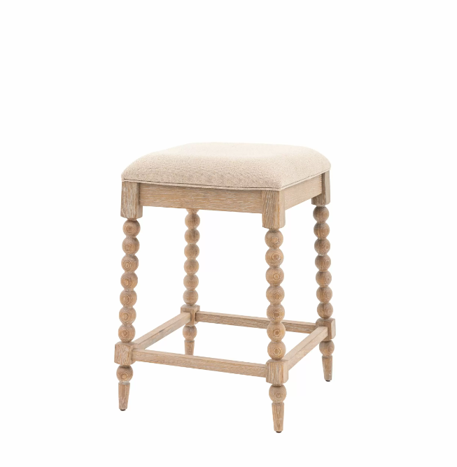 The legs of this exquisite kitchen stool boast intricately carved bobbing details, achieved through the skilful use of a lathe by our master craftsmen. Made from oak and delicately washed with a mellow lime tone, this stool exudes understated elegance. The seat is upholstered with a biscuit-coloured fabric, and additional matching pieces are also offered.
