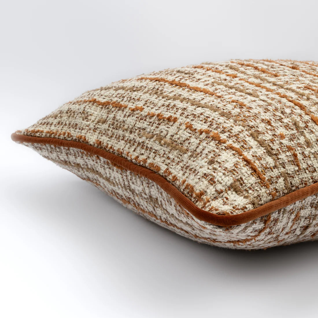 Charles Ted Celine Piped Tweed Style Cushion - Russet & Cream