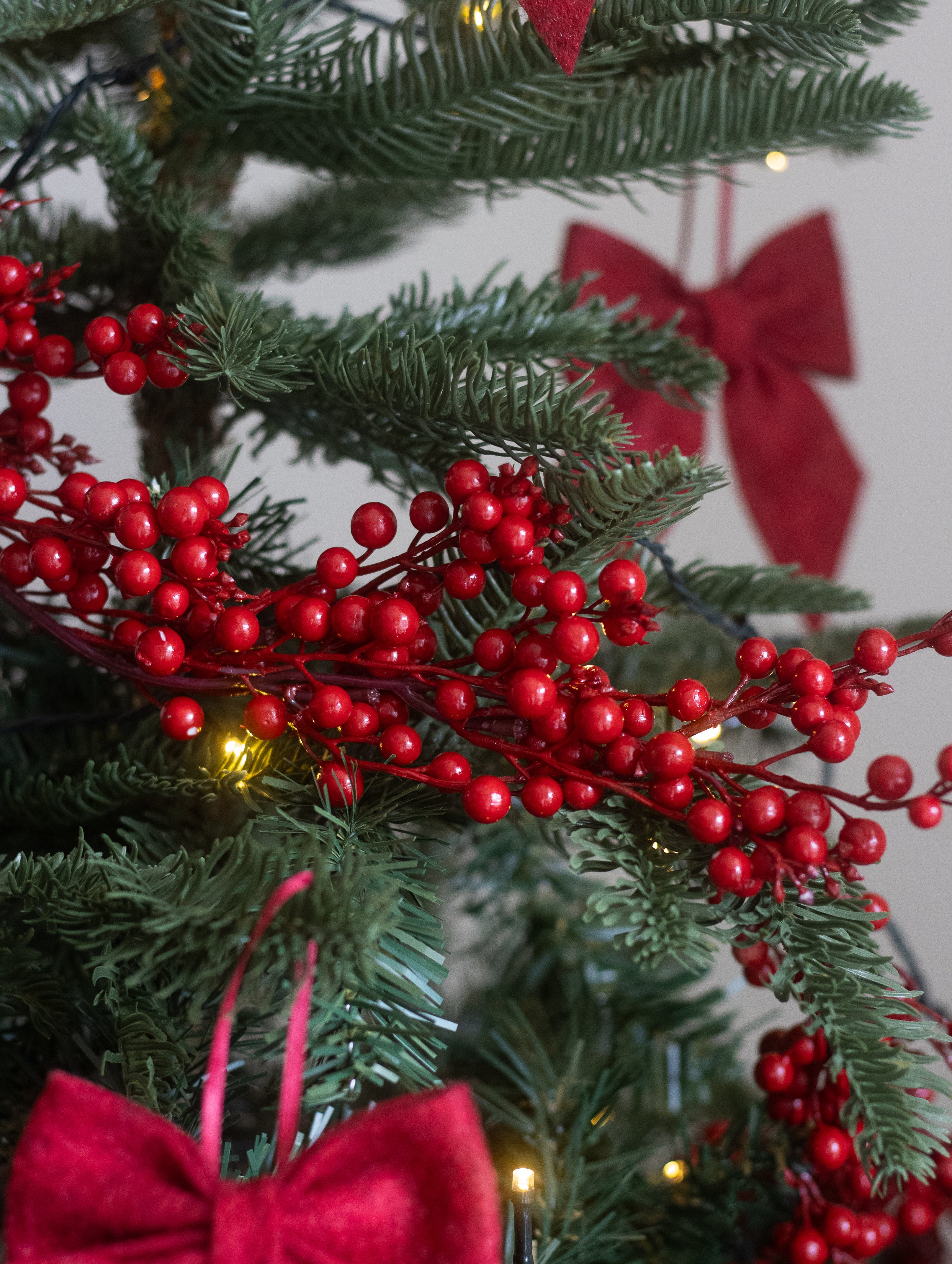 Bring festive charm into your home with the Crimson Berry Cascade Garland 151cm. Designed with lifelike red berries, this faux garland adds a pop of seasonal colour to mantels, staircases, tablescapes, and door frames. Its realistic detail and flexible branches make it easy to shape and style, creating a warm and inviting atmosphere for Christmas and winter décor. Unlike real foliage, this garland requires no maintenance, ensuring long-lasting beauty year after year.