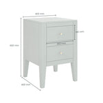The Stockton Two Drawer Bedside Table in Pigeon Green is the perfect combination of timeless style and everyday functionality. Expertly crafted from stoneware birch wood and MDF, this elegant nightstand features a calming pigeon green finish that blends beautifully with both modern and traditional interiors.