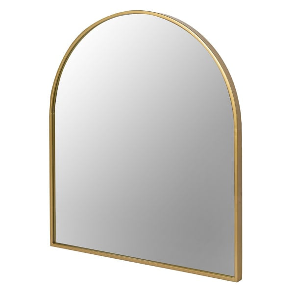 A beautiful arched mirror with a soft gold frame.