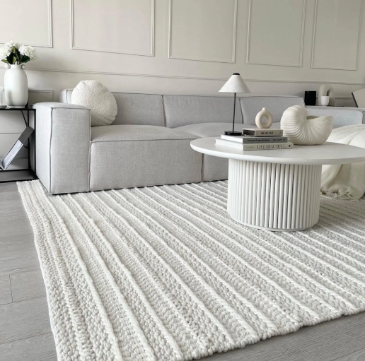Indulge in the luxurious texture of our hand-loomed PET yarn rug, perfect for both indoor and outdoor use. Its simplistic yet intricate weave provides durability and easy maintenance, making it a practical and stylish addition to any space.