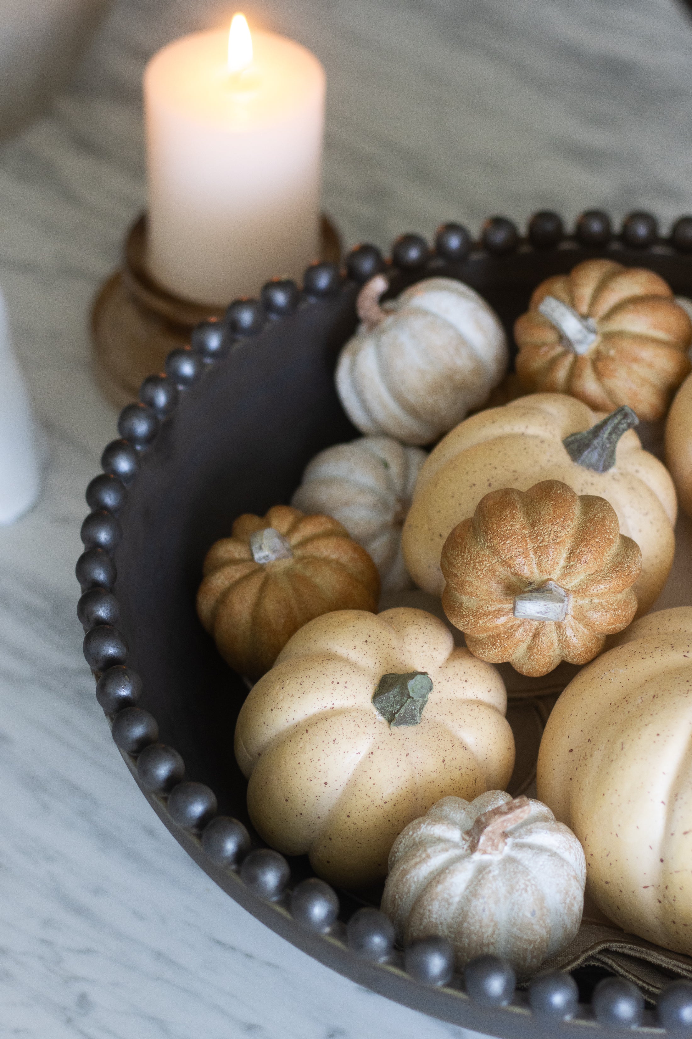 I bought this set as a treat to myself. Have displayed them on my shelf in a bowl to add a pop of Autumn to my home