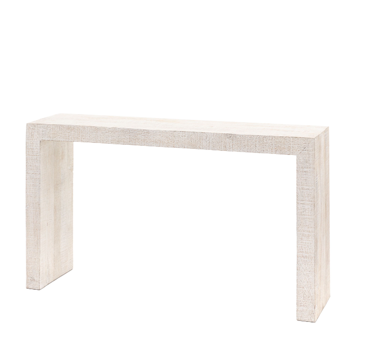 Elevate your space with the versatile Nebraska Mango Wood Console. This substantial yet refined piece can function as a console table or a slim desk, adding a touch of rustic charm to any room. Crafted from rough hewn mango wood and finished in a whitewash, this table exudes a charmingly rustic feel. For a more natural look, it is also available in a natural finish. Complete the look with coordinating pieces from our collection.