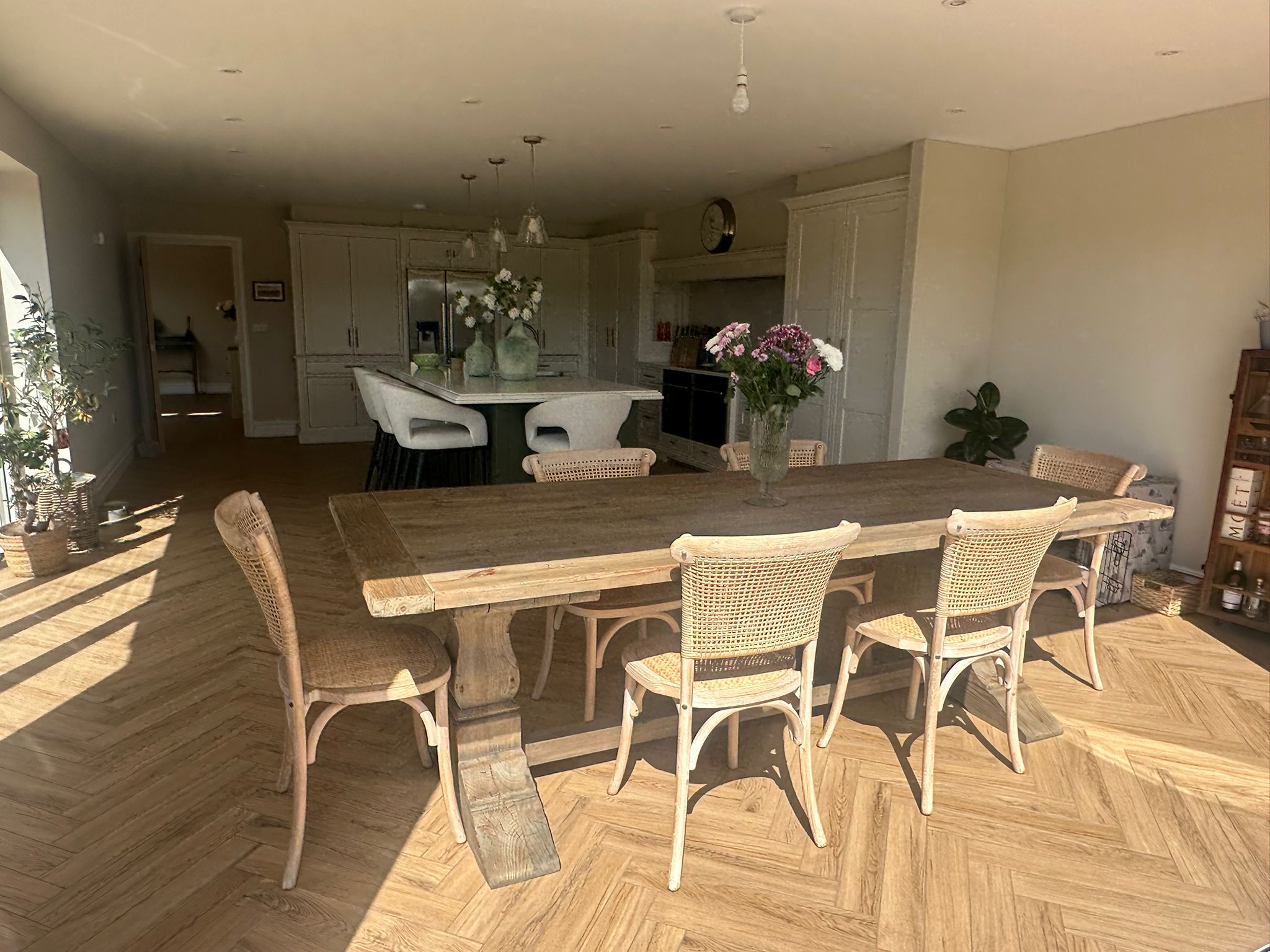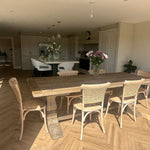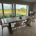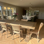 Bring rustic charm and timeless elegance to your dining space with the New Hampshire Reclaimed Pine Dining Table. Expertly handcrafted from sustainably sourced reclaimed pine wood, this farmhouse-style table features a beautifully weathered finish and robust trestle base, exuding natural character and durability. Its generous rectangular top comfortably seats 6–8 people, making it perfect for family gatherings or entertaining guests. With its warm tones and classic silhouette, the New Hampshire table blends seamlessly into both traditional and modern interiors. A sustainable, stylish choice for your home.