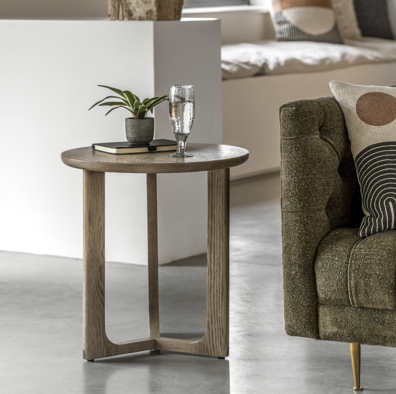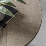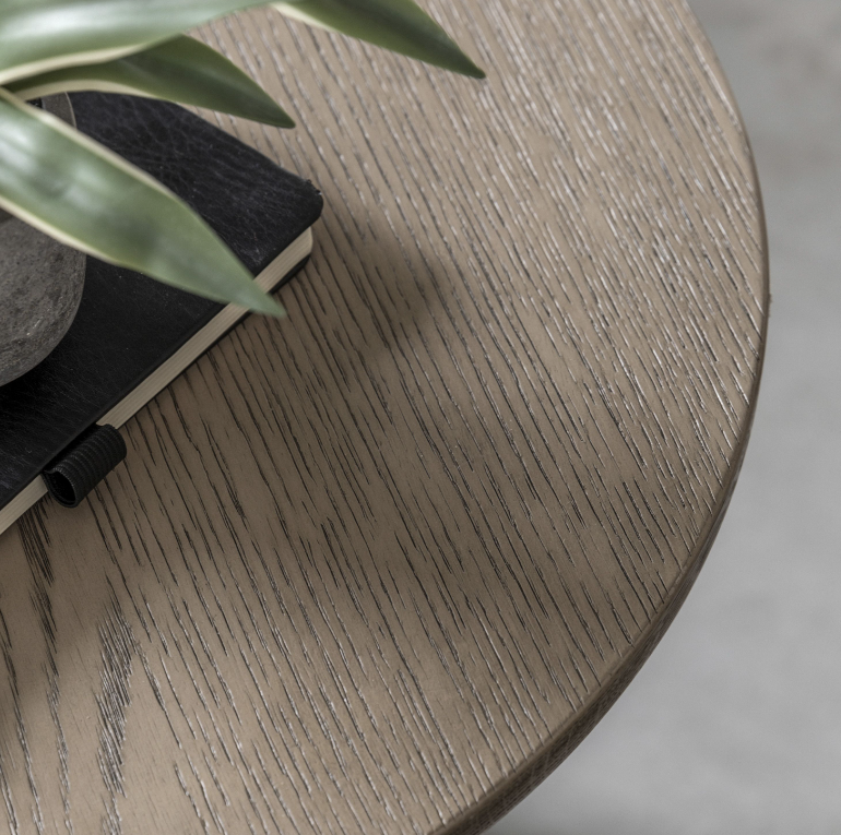 Crafted from the finest oak and structural oak veneers where practical, this beautiful side table offers elegant design, with its simple round top and beautifully shaped underframe. The wood has a smoked oak finish. The table is also available in a natural finish, and matching pieces are available.