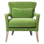 Upholstered in lush green velvet, this stylish chair features a supportive high back, plush seat cushion, and a coordinating lumbar pillow for added comfort. The sleek, tapered wooden legs