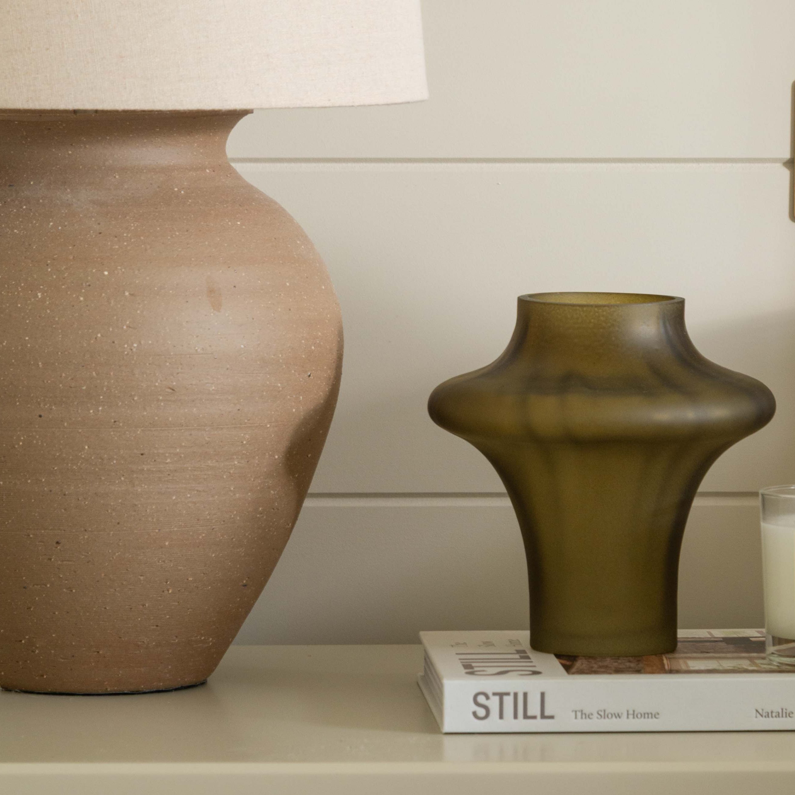 Smokey amber-green glass for a warm, moody aesthetic