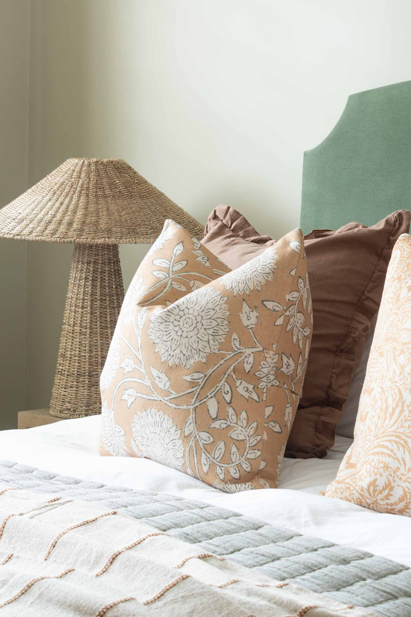 Charles Ted Elara Floral Linen Cushion | Ocre