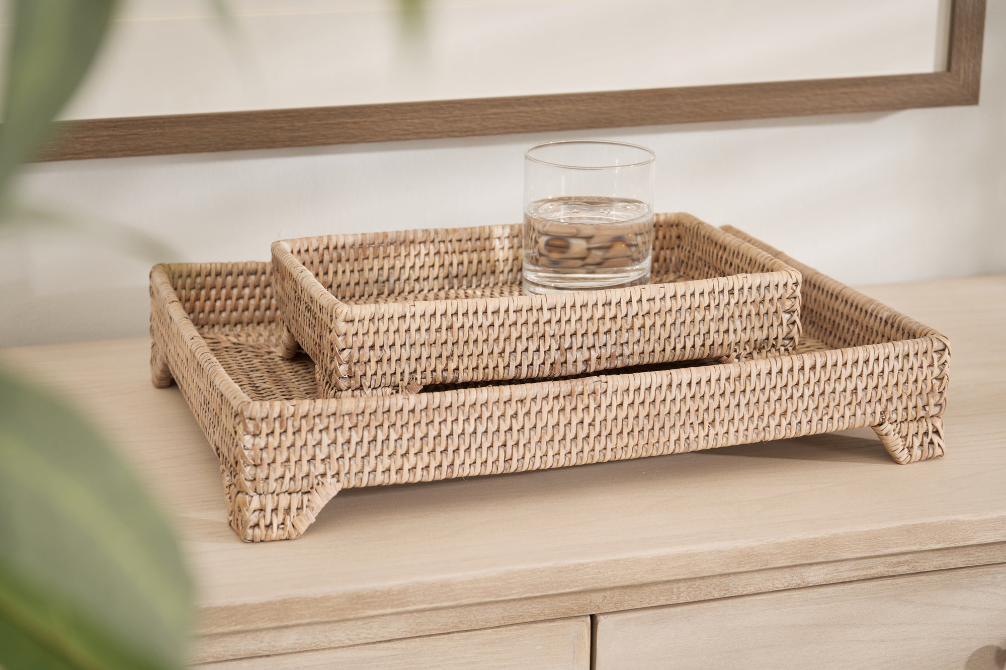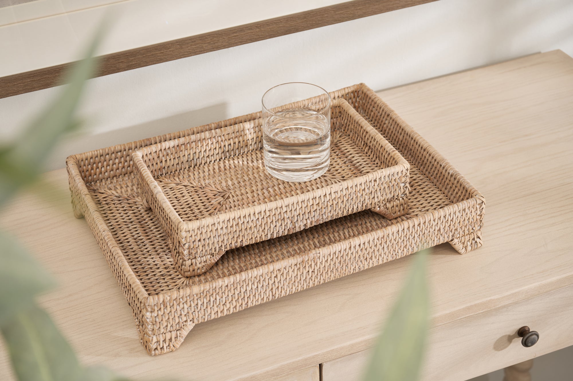 Charles Ted Kempsford Whitewash Woven Tray on Feet | Available in Two Sizes