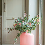 Ideal for use as a decorative statement piece or for displaying your favorite fresh or dried florals, this contemporary pink vase blends effortlessly with neutral palettes and modern home decor. Whether you're styling a chic living room, a serene bedroom, or a bright hallway, this blush glass vase brings effortless charm and sophistication to any setting.