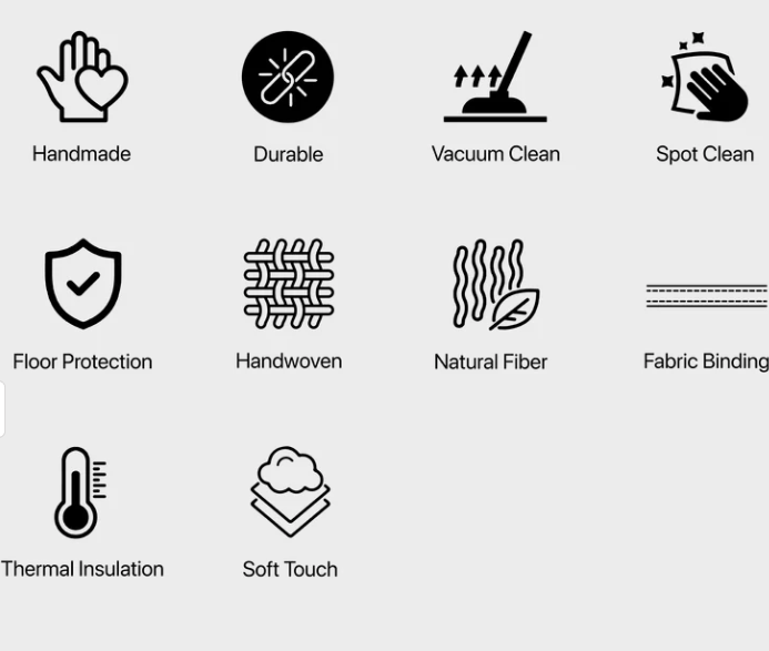 CARE INSTRUCTIONS: We recommend using rug underlay for our handwoven rugs to prevent movement and protect against colour transfer. Shake or beat the mat to remove loose dirt. Rotate periodically for even wear. Treat spots and stains promptly. Keep the rug dry and blot spills immediately with a dry, white cloth or paper towel. For stubborn stains, seek specialist advice. Avoid direct sunlight to prevent fading.