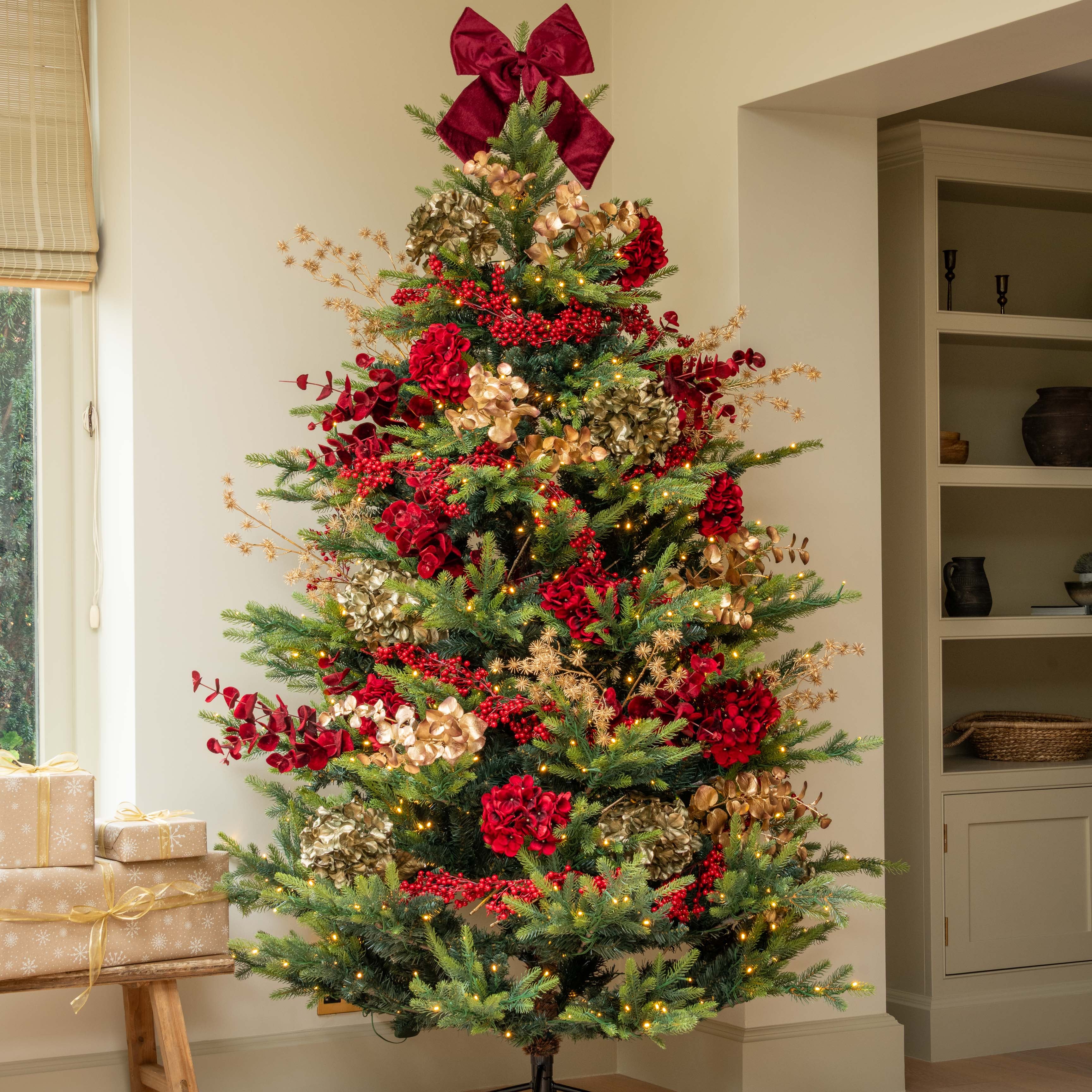 • Lifelike faux greenery, including eucalyptus stems and artichokes, that add lush, low maintenance botanical flair .