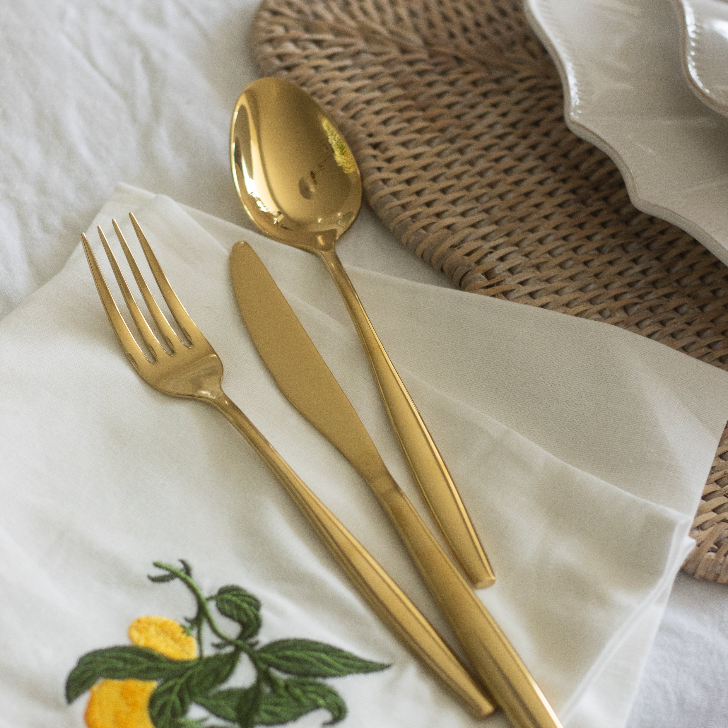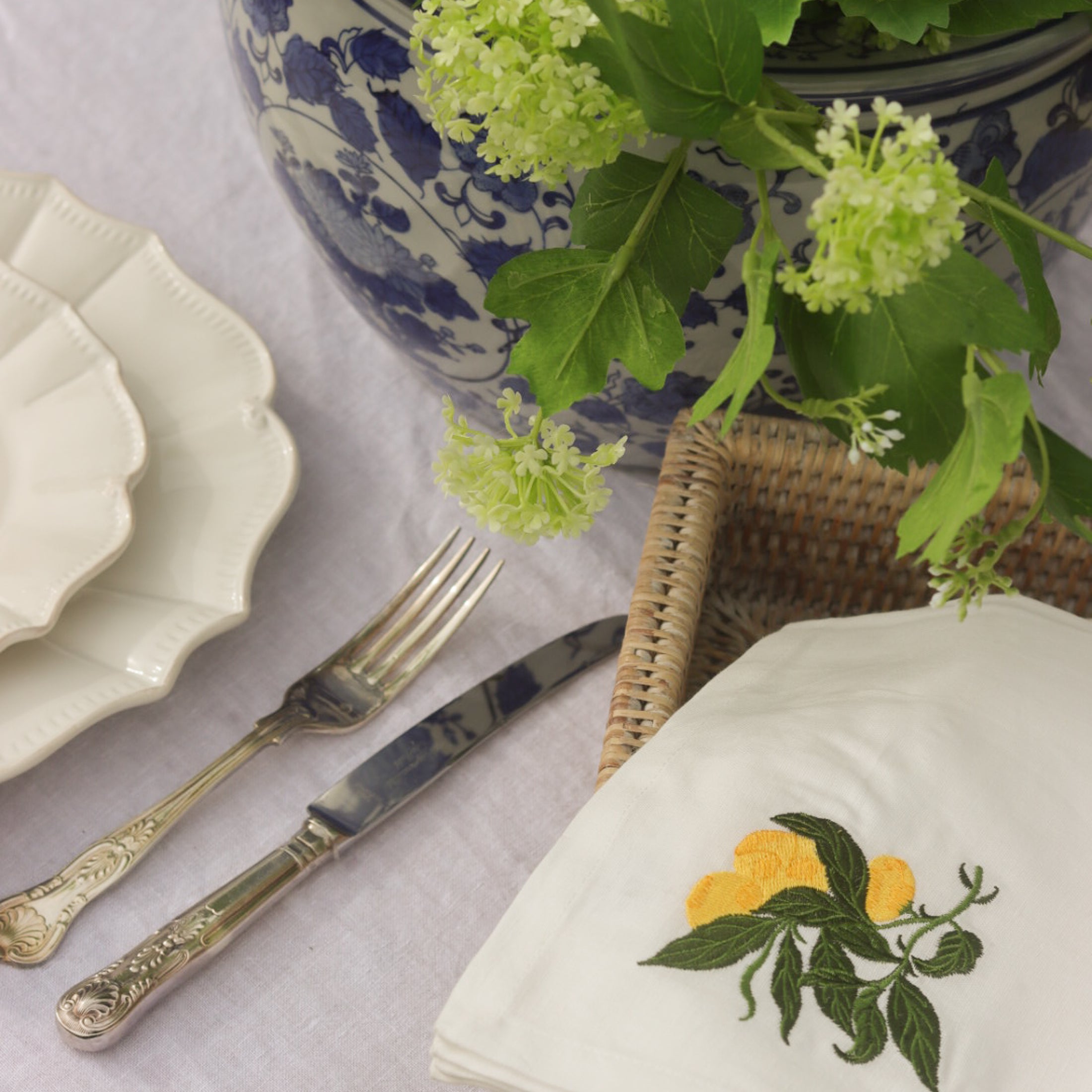Charles Ted Embroidered White Cotton Table Napkins with Lemon Design | Set of 4