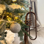 Vintage inspired trumpet ornament with rustic weathered antique brass style finish