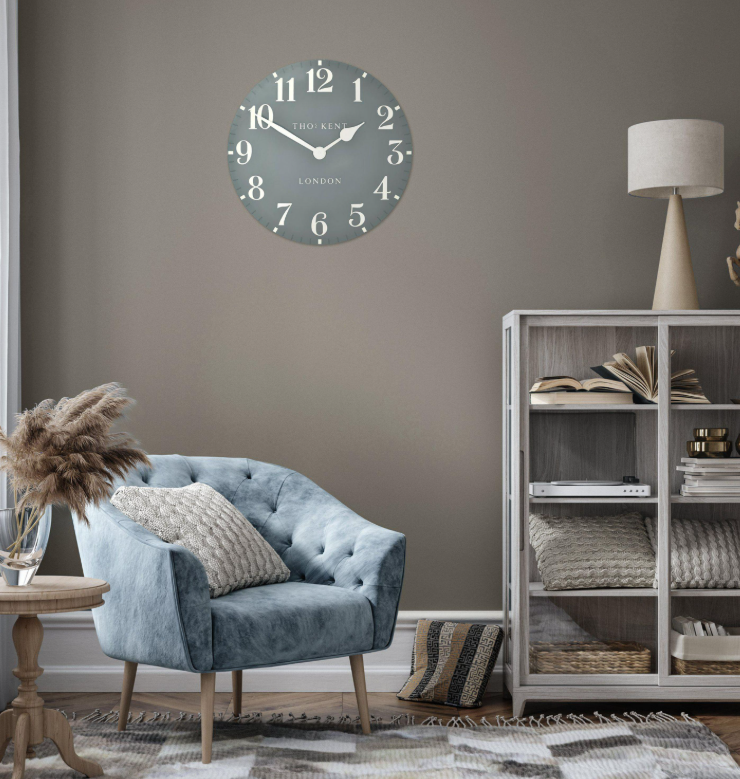 The Thomas Kent Arabic Flax Blue 20 Inch Wall Clock offers effortless elegance with its soft flax blue finish and signature raised white numerals. Designed to make a statement, this large format clock blends classic styling with contemporary colour, creating a striking focal point for living rooms, kitchens, hallways, and open plan spaces.