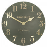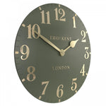 Rich and organic tones of green are complemented by bright gold numerals, ticks and hands; adding a degree of glamour to a curvaceous 20 inch wall clock dial.