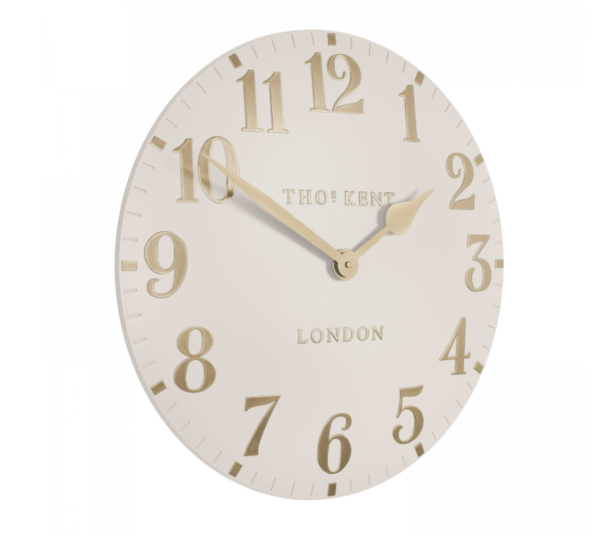 The Thomas Kent Arabic Oatmeal 20 Inch Wall Clock offers timeless simplicity with its warm neutral tone and signature raised gold numerals. The soft oatmeal finish blends seamlessly with modern, rustic, and classic interiors, making it an ideal statement piece for kitchens, living rooms, hallways, and open plan homes. Its large 20 inch size creates an eye catching focal point while maintaining a clean and elegant presence.