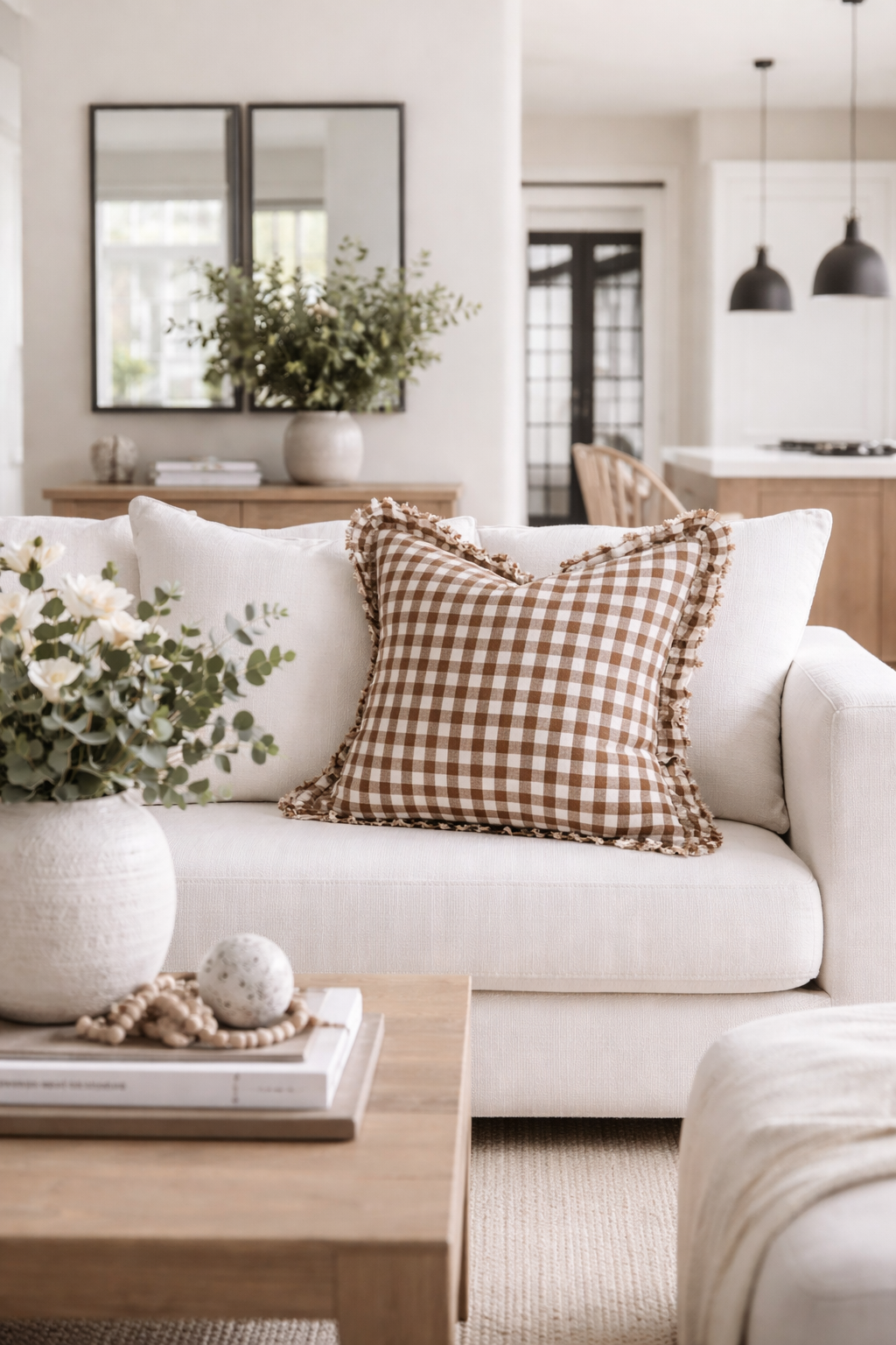 Bring character and charm to your home with the Faith Ruffled Linen Cushion Cover in a classic brown and white gingham pattern. This beautifully textured cushion cover features soft ruffled edges that add a cosy, vintage inspired touch to sofas, beds and armchairs. The timeless gingham design makes it an easy pairing with both neutral and patterned cushions, enhancing your space with warmth and visual interest.