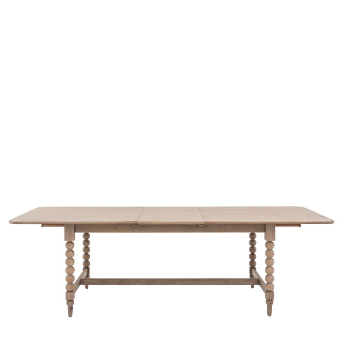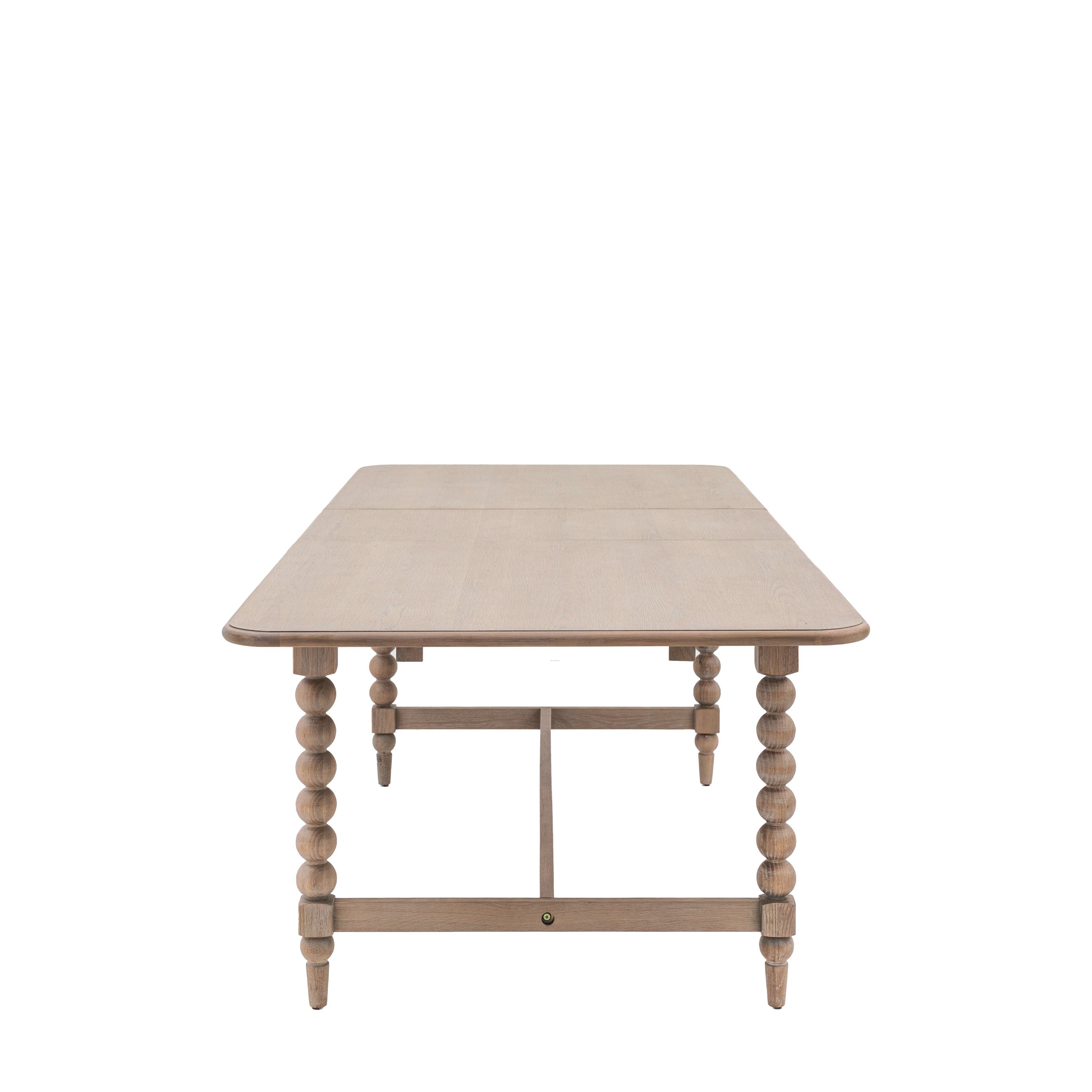 Elevate your dining experience with our exquisite Camille Turned Wood Extending Dining Table. This luxurious addition to your dining room is not only aesthetically pleasing, but also highly functional with its extendable top. Hand-crafted by the most skilled artisans, the legs of this table feature intricate bobbing detail achieved through the delicate art of wood turning on a lathe. Crafted from the finest oak solids and veneers, our table boasts a subtle lime wash finish that is both soft and refined. Elevate your entire dining room with our matching collection of pieces.