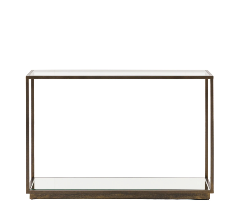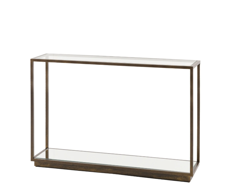 Featuring a clear tempered glass top and lower shelf, the Geneva Console Table creates a clean, open look that enhances natural light and makes rooms feel more spacious. The sleek metal frame provides sturdy support while adding a warm contemporary finish that blends beautifully with modern, transitional, and minimalist interiors.