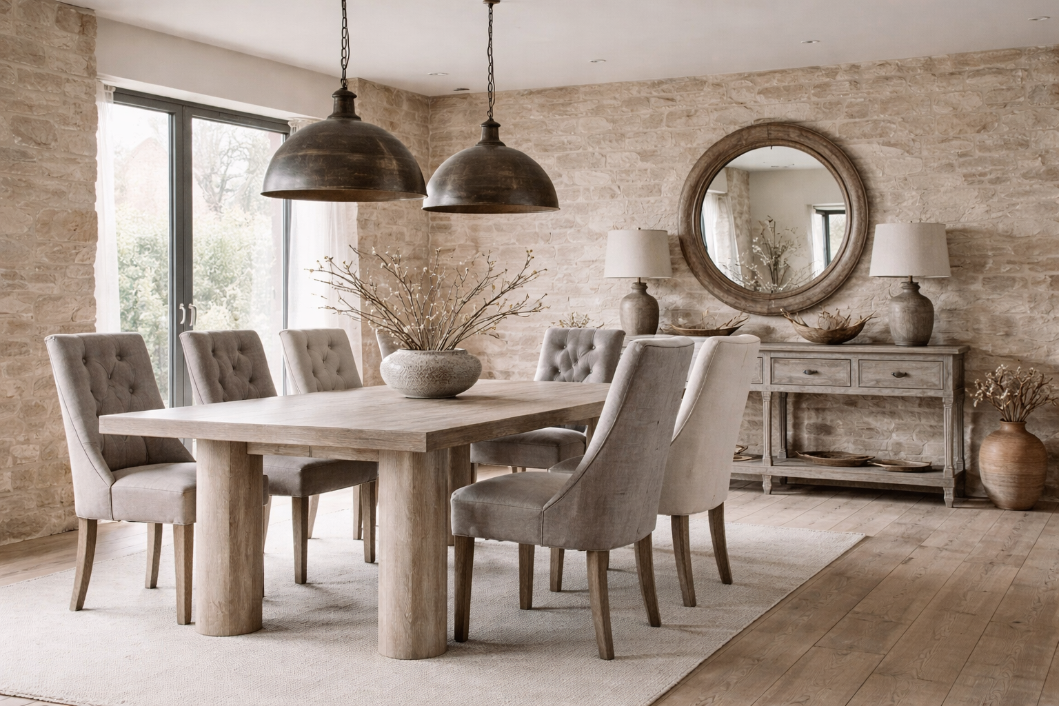 The Harbour Solid Pine Dining Table captures the effortless elegance of the Hamptons with its light washed driftwood finish and bold design. Crafted from durable solid pine, this rectangular dining table showcases natural wood grain and knots, giving it an authentic coastal character. Supported by four cylindrical legs, it blends timeless craftsmanship with modern form. Perfect for family dinners, entertaining guests, or anchoring a stylish dining room, this table brings warmth, strength, and Hamptons inspired sophistication into your home.