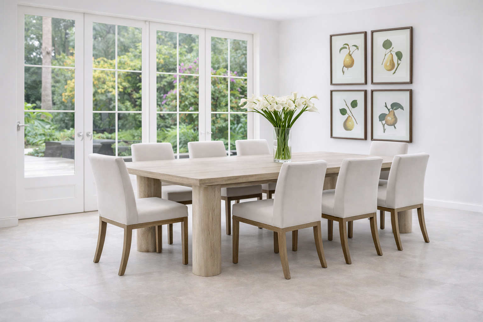 The Harbour Solid Pine Dining Table captures the effortless elegance of the Hamptons with its light washed driftwood finish and bold design. Crafted from durable solid pine, this rectangular dining table showcases natural wood grain and knots, giving it an authentic coastal character. Supported by four cylindrical legs, it blends timeless craftsmanship with modern form. Perfect for family dinners, entertaining guests, or anchoring a stylish dining room, this table brings warmth, strength, and Hamptons inspired sophistication into your home.