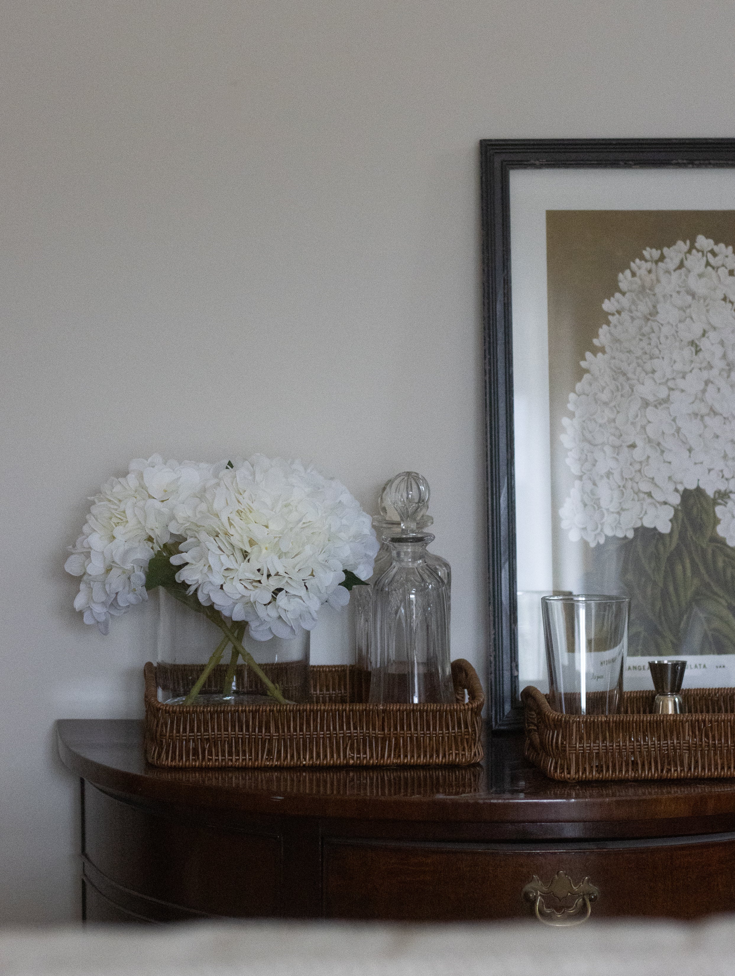 • Realistic faux hydrangea blooms