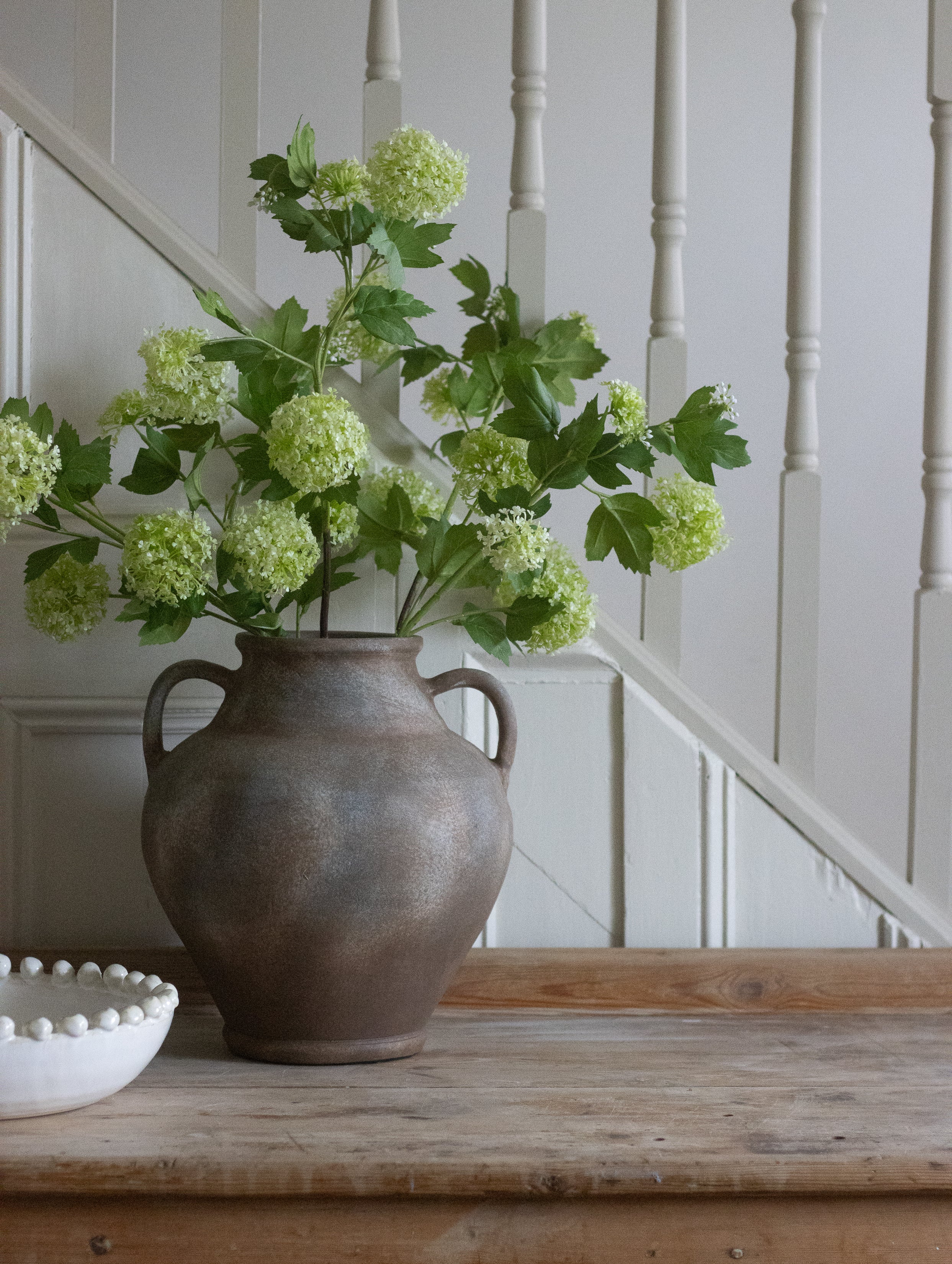 Short terracotta urn styled on console table
