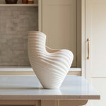 Elevate your interior décor with the Oceana Whisper Porcelain Vase, a sculptural masterpiece inspired by the gentle movement of ocean waves. Crafted from high-quality unglazed porcelain, this designer vase features an organic, fluid silhouette and delicate horizontal ridges that mimic natural textures—making it a perfect blend of modern art and minimal elegance.
