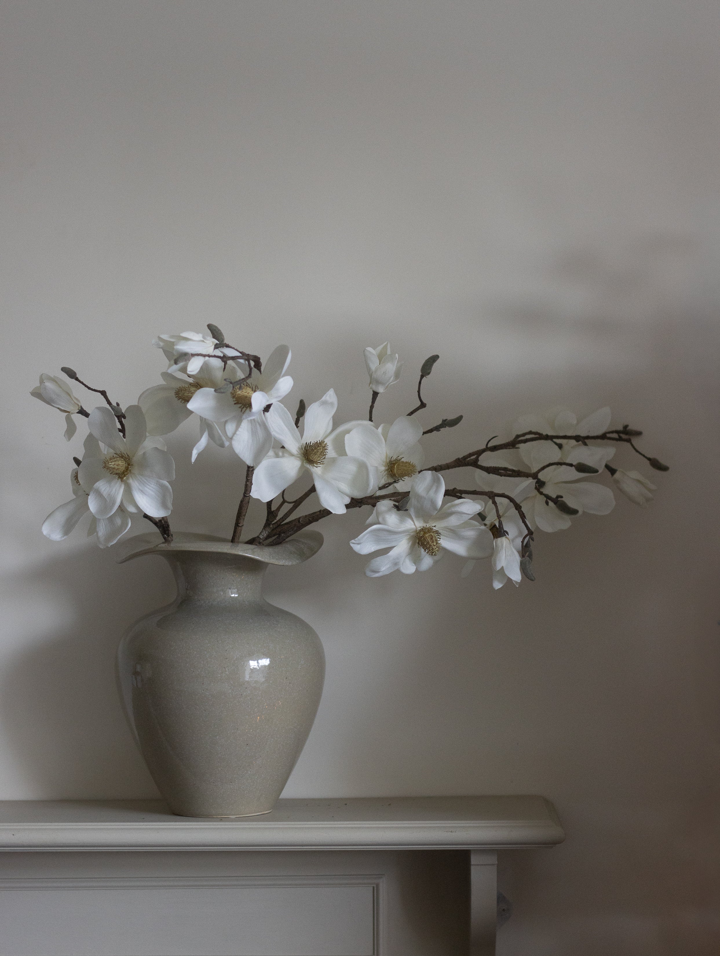 Design: Realistic cream magnolia blossoms with natural looking stems