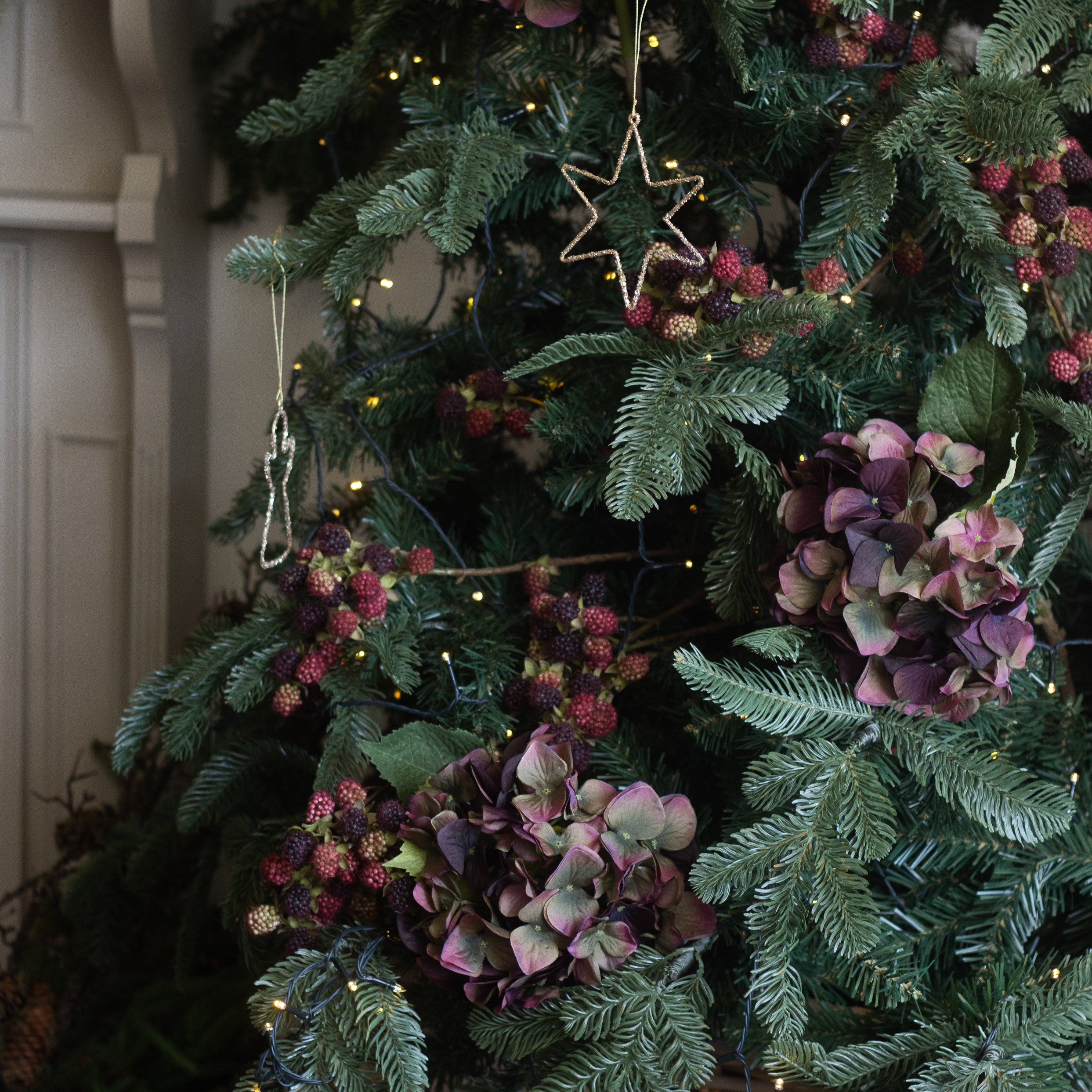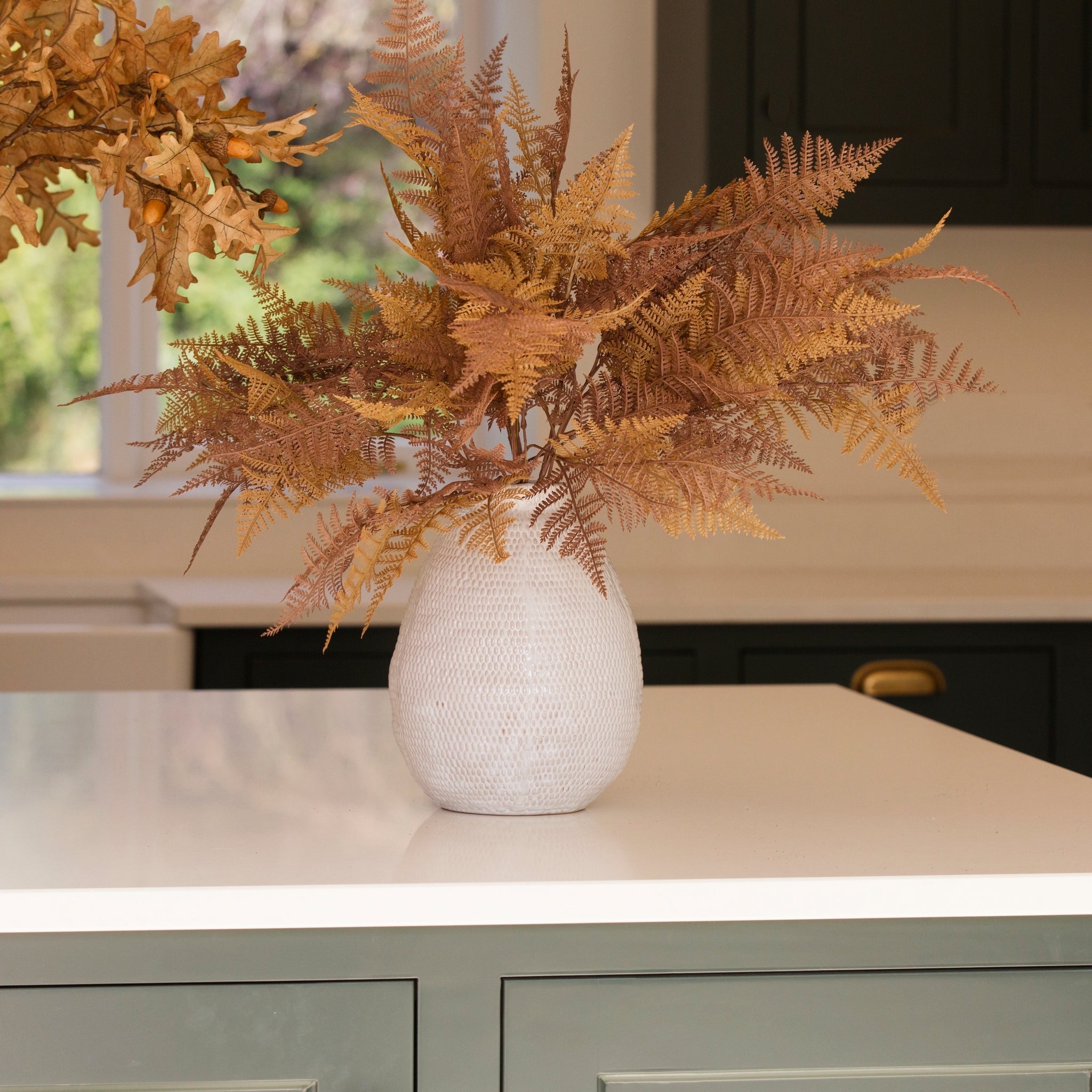 Charles Ted large faux berry eucalyptus stem styled in a rustic vase for natural home décor