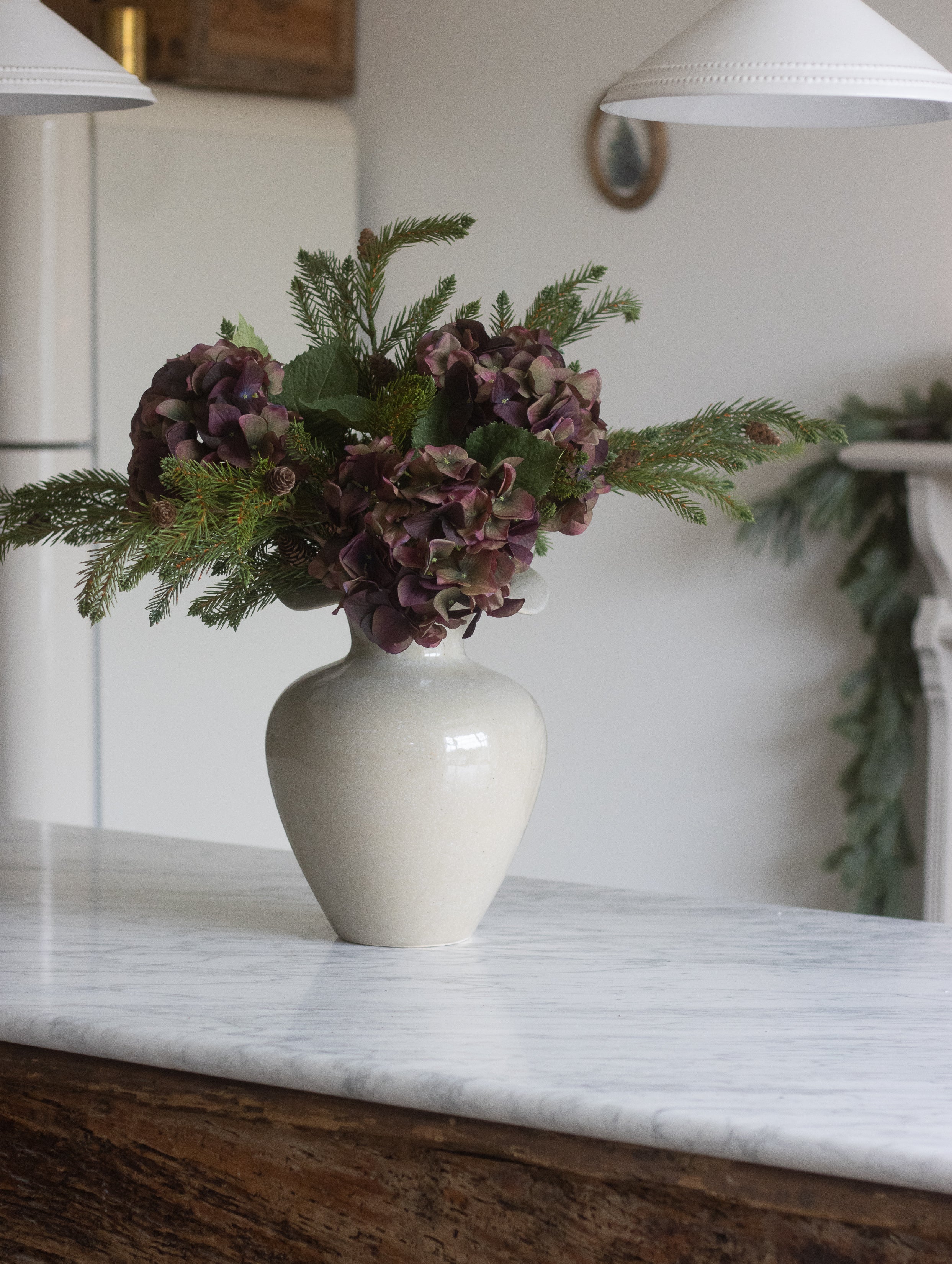 A stunningly lifelike faux burgundy hydrangea with a burgundy colour and hints of green.