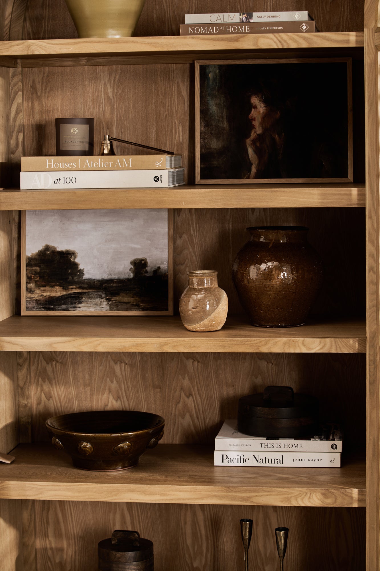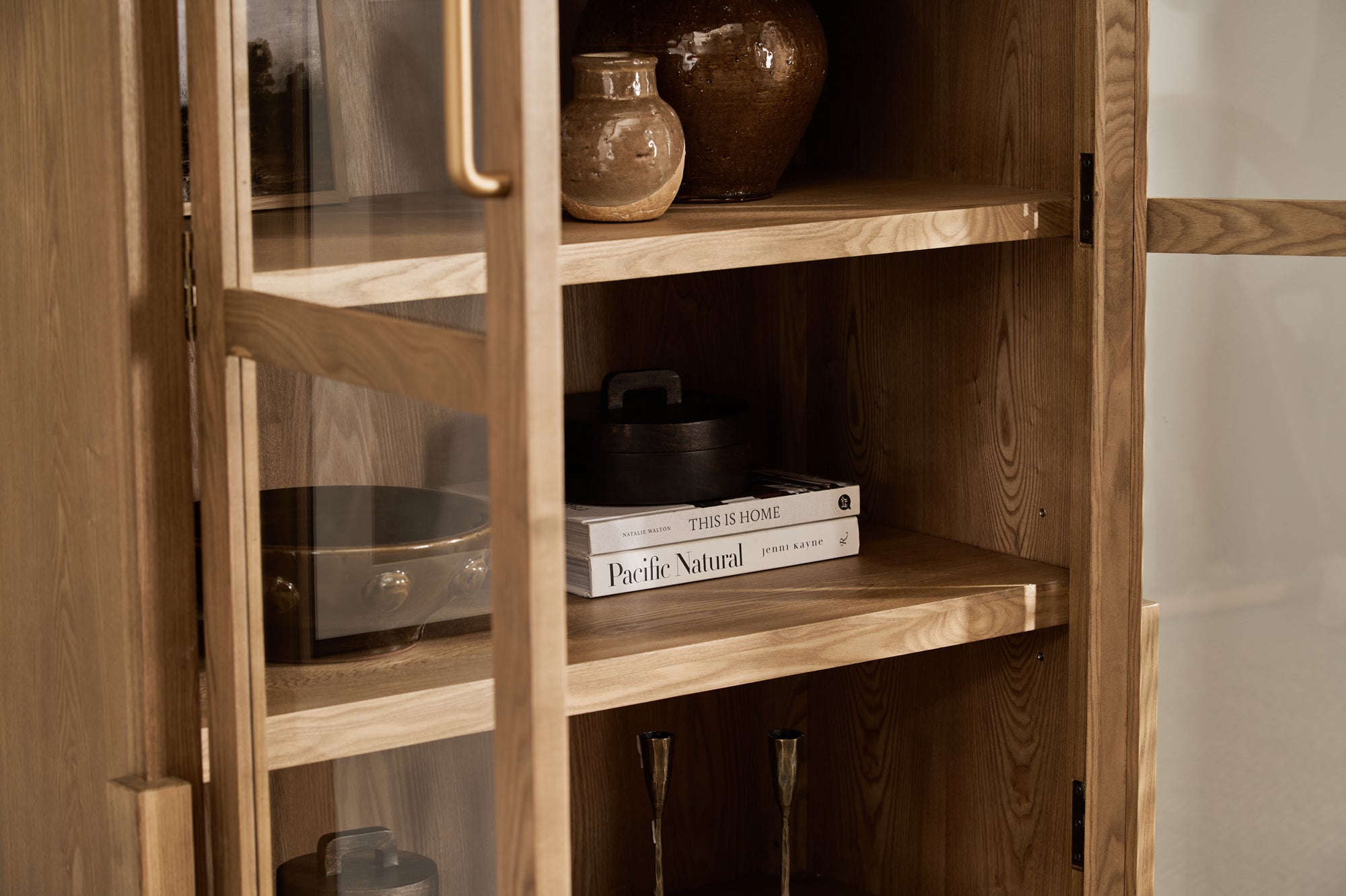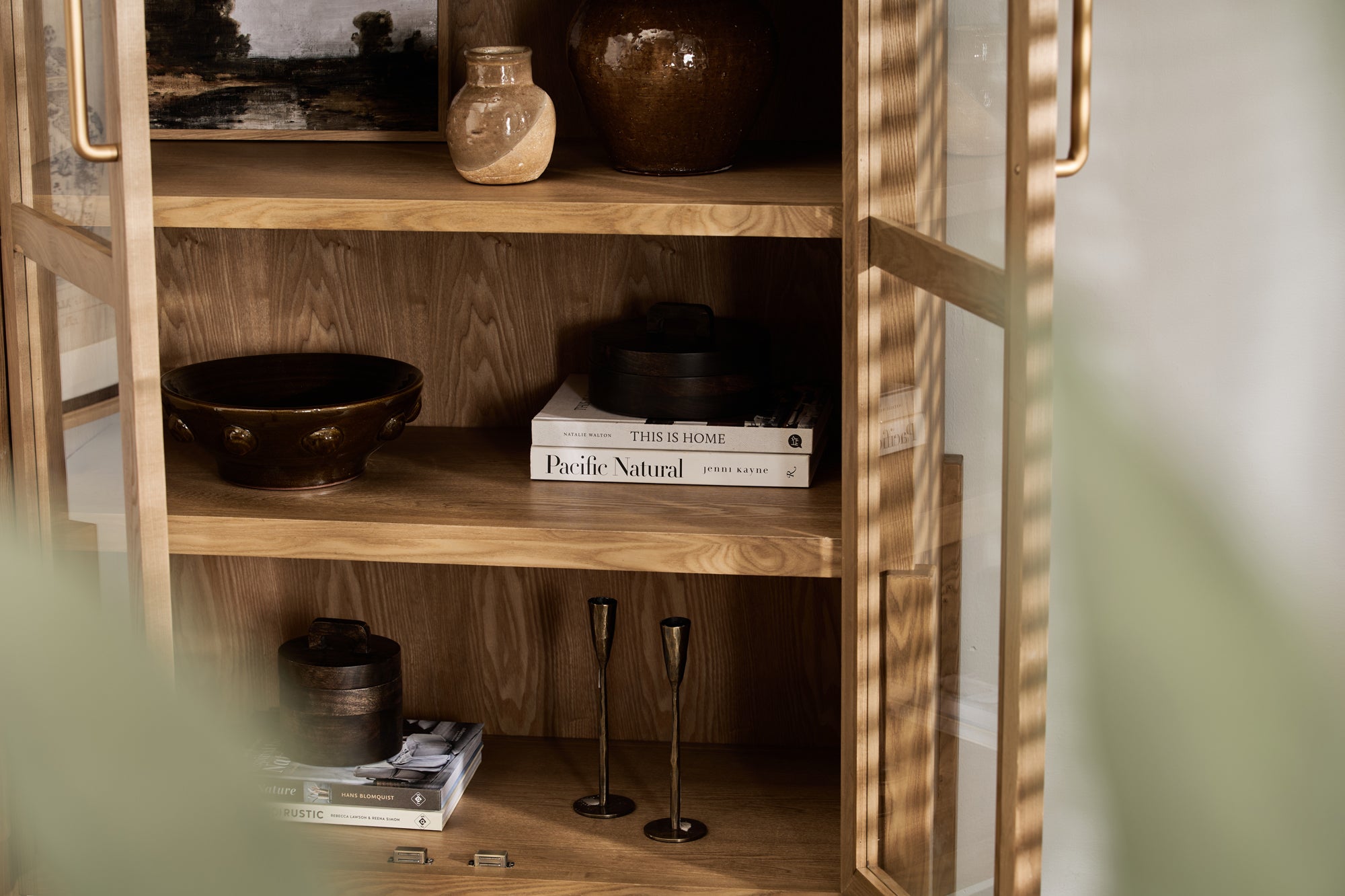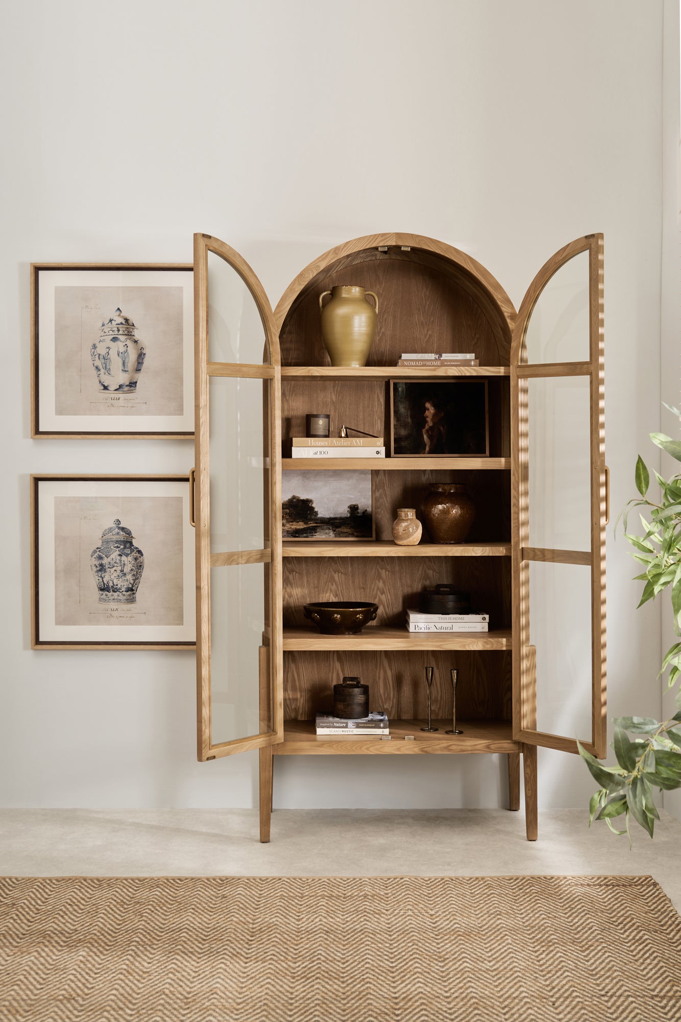 Elevate your home décor with this beautifully crafted arched display cabinet, made from premium solid elm wood. Featuring a timeless natural finish, this elegant unit boasts five spacious shelves and framed glass panelled doors, perfect for showcasing your favourite books, collectibles, or decorative items. The distinctive arched top design adds a modern yet classic touch, making it a statement piece for any living room, dining area, or study.