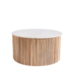 The Roma Coffee Table is made with bleached mango wood and features a solid granite top.